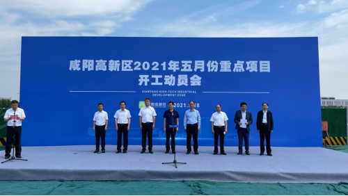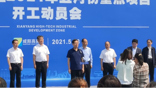 项目开工仪式现场也是咸阳高新区2021年五月份重点建设项目开工动员会主会场,咸阳市人大常委会副主任何建军出席并宣布开工令;秦都区区委副书记、区长、高新区管委会主任景雪峰和高新区领导班子全体成员、渭滨办代表及项目单位和参建各方代表等200多人参加开工仪式,公司董事长助理、副总经理王昭强代表项目单位现场发言。